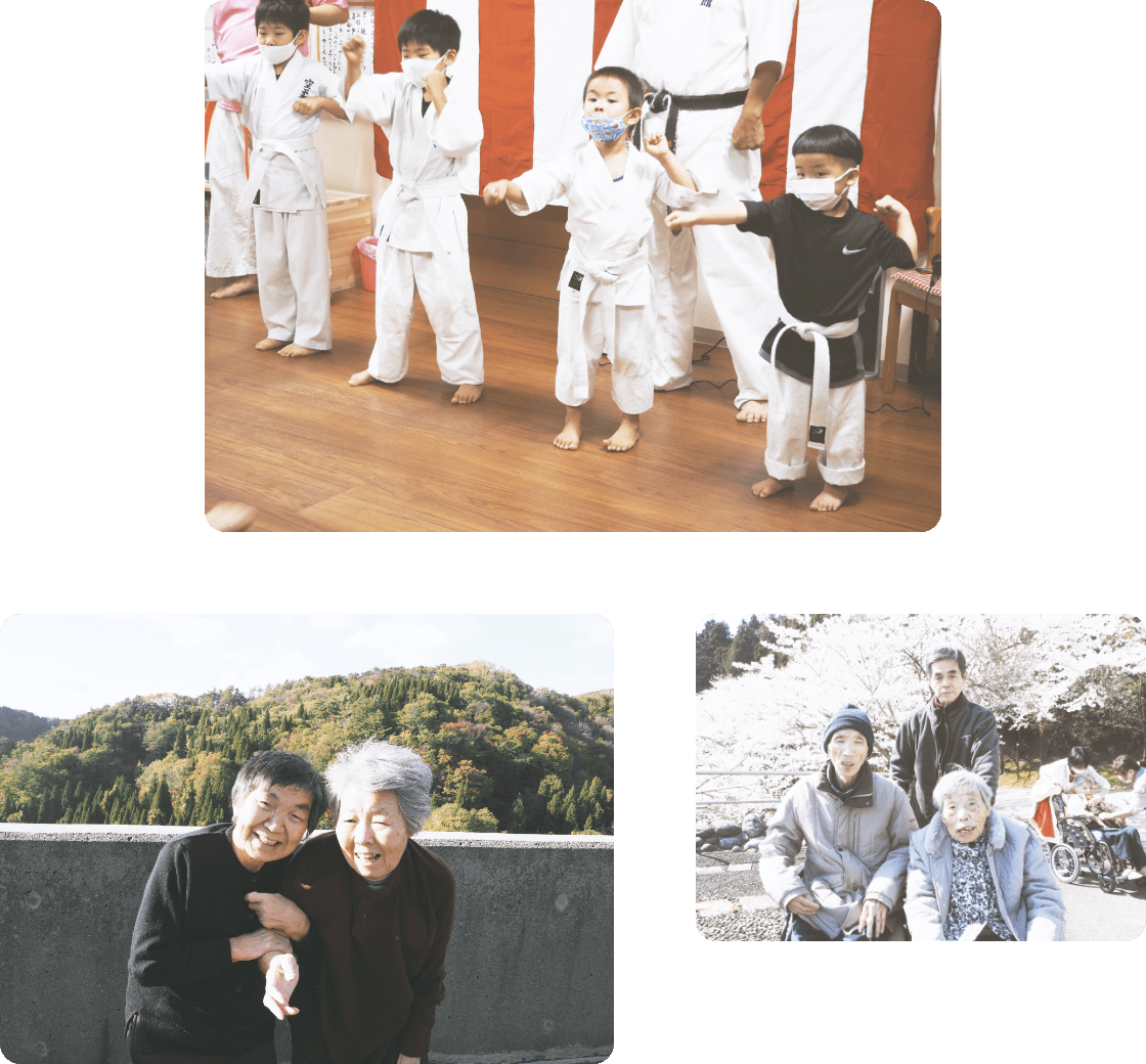 地元地域の方をご招待してお食事会を催したり、祭事や展覧会などの地域行事に参加したりと、介護施設を利用していても、懐しい地域の方との交流の機会がたくさんあります。能登半島地震では、地域の皆さんとの助けあいの場となりました。