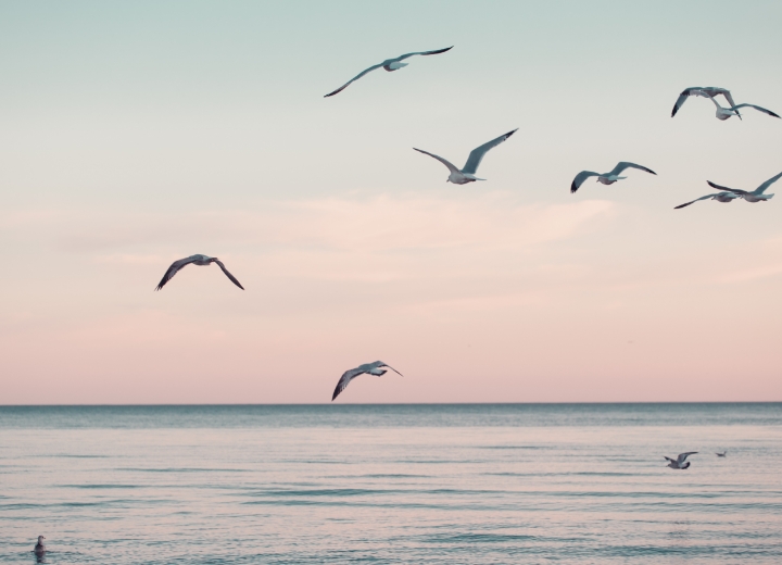 冬の雪降る海からは白い気嵐が立ち上ります。